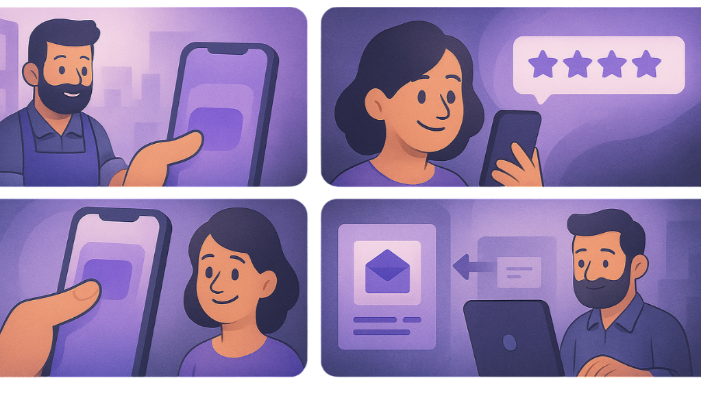 After a job or visit, customers receive a friendly follow-up inviting them to leave a review no staff chasing, no awkward asks.